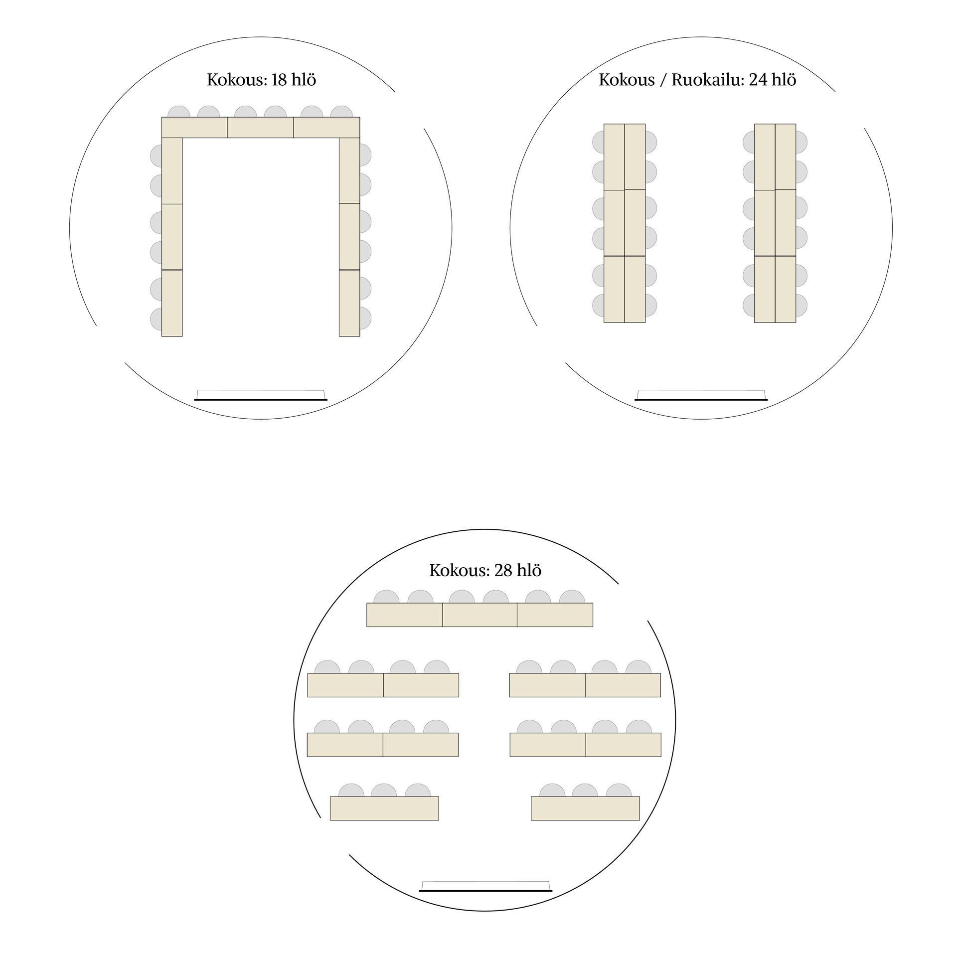 - Leppälä – 20 hengen juhlatila, sympaattinen tila hieman pienemmille ryhmille.