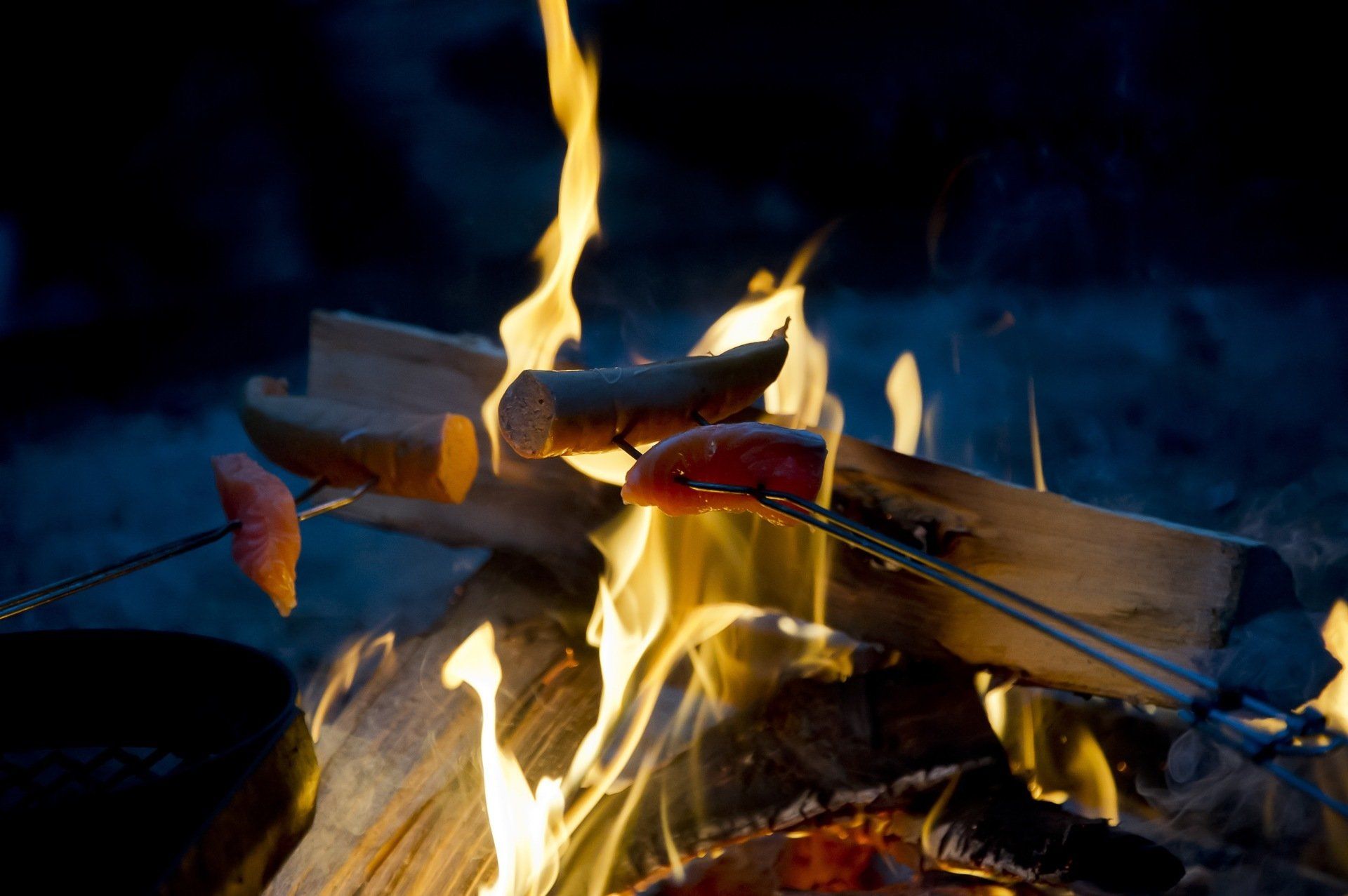 - Tikkukalaa ja makkaraa nuotiolla