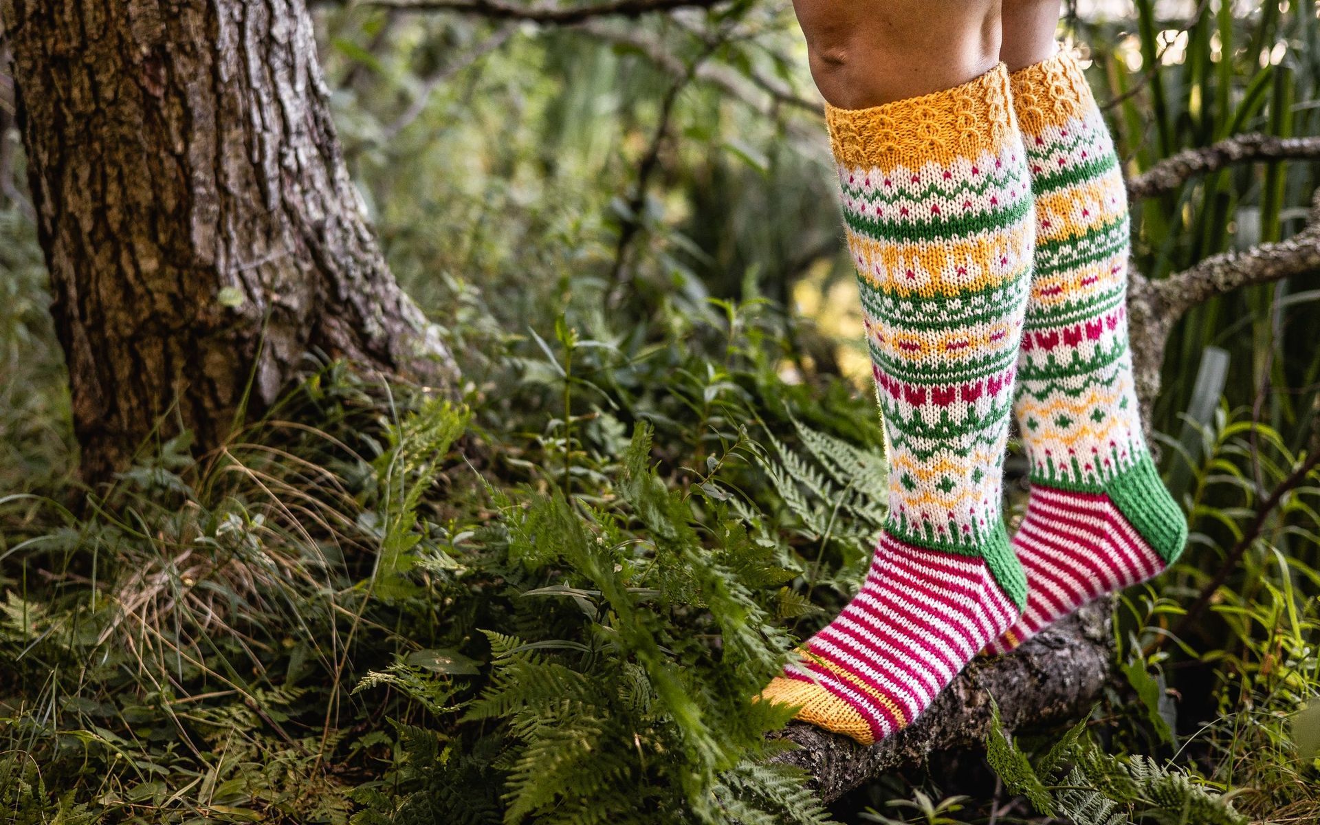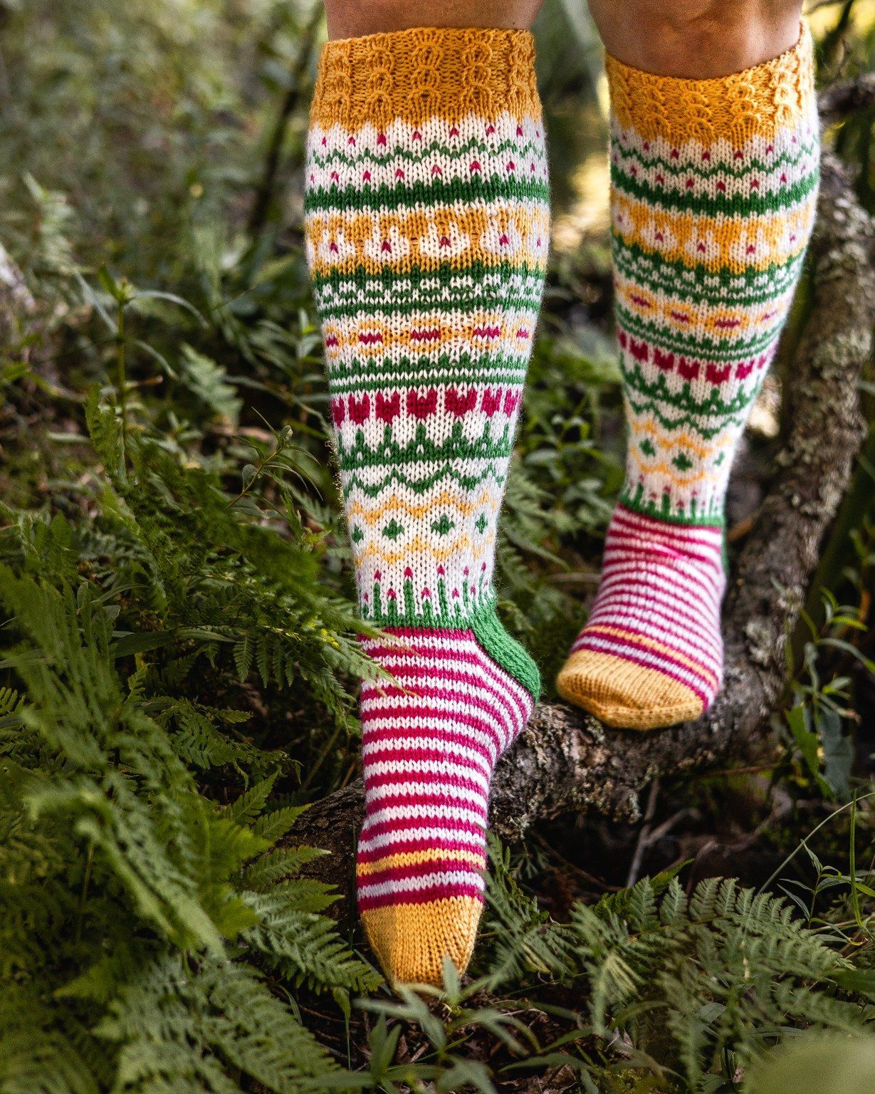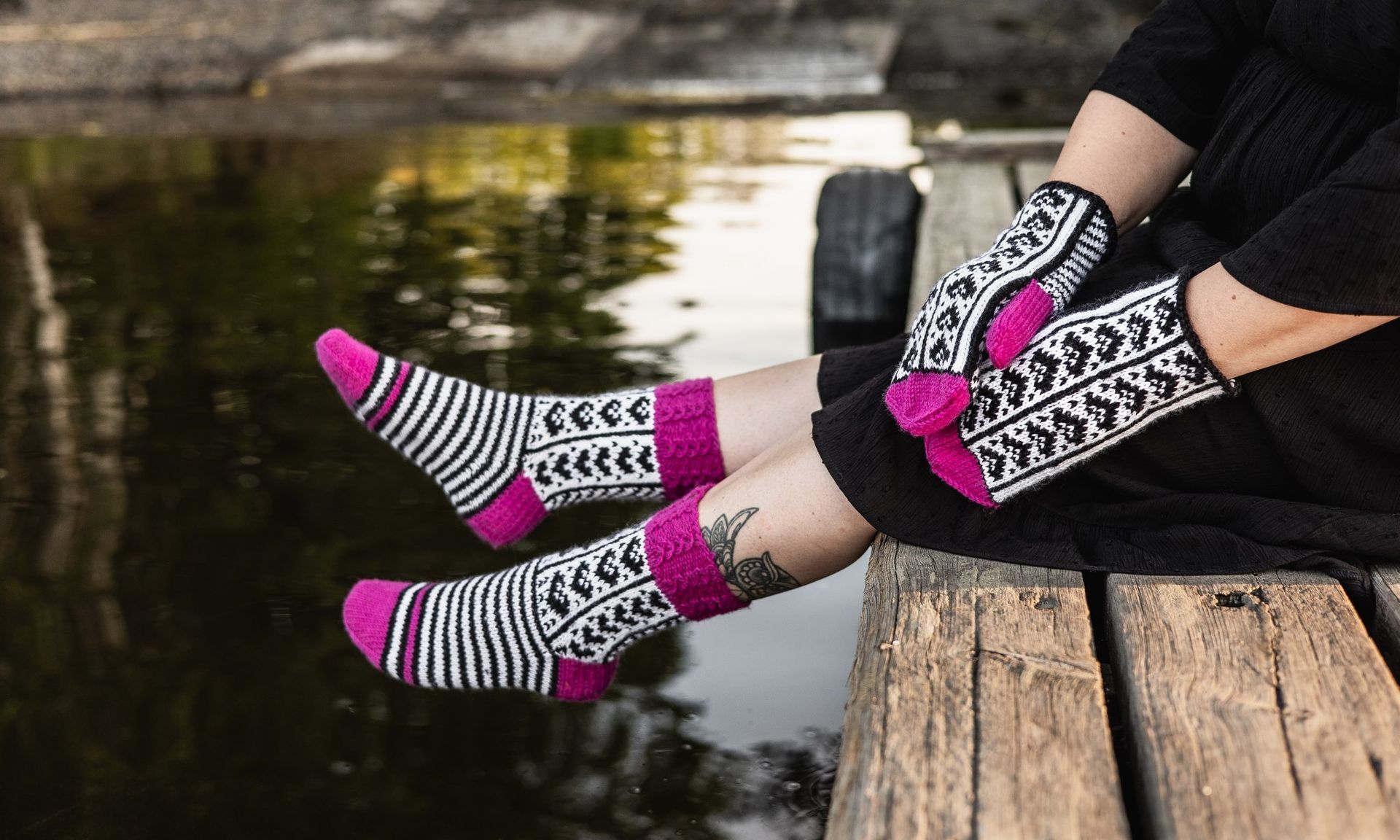 Jonna on suunnitellut taas uuden sukkamallin, jota neulotaan yksinoikeudella vuoden 2026 molemmilla Jonnan opastamilla neuleretriiteillä (18.-19.4. & 17.-18.10.). Malli on tuttuun tapaan helppoa kirjoneuletta, jotta mahdollisimman moni pääsee hyvään alkuun retriitin aikana ja osa saa sukat jopa valmiiksi asti. Mallista löydät useamman koon, joten voit neuloa sukat itsellesi tai lahjaksi.