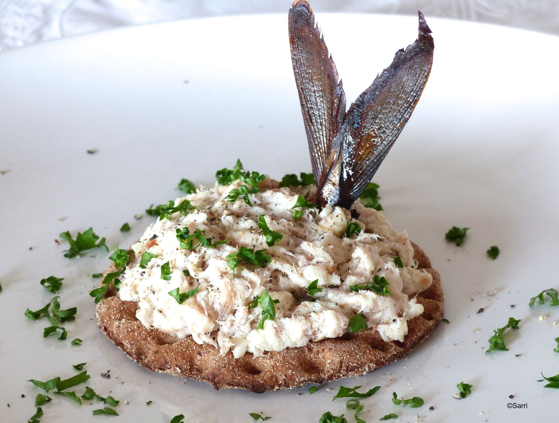 Perkaa savukala puhtaaksi (tähteeksi jääneetkin käy mainiosti), pilko ja sekoita joukkoon sulatejuusto ja pippuri. Se on siinä. Reseptissäni on muuten käytetty makrillia, pyrstöineen päivineen.